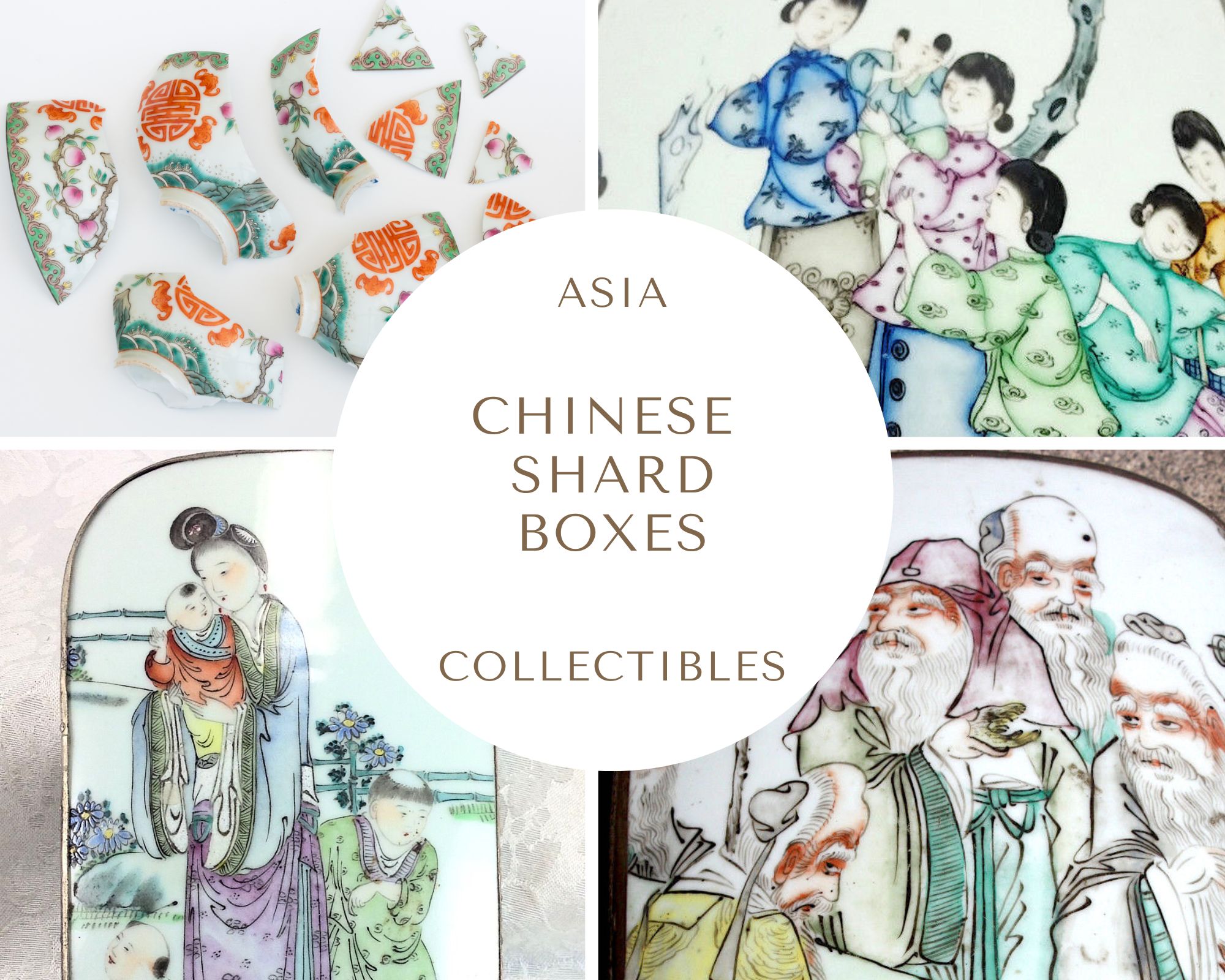 These Chinese boxes are made from fragments of ancient porcelain and celadon vases. That's why they are known as "shard boxes" in the West.