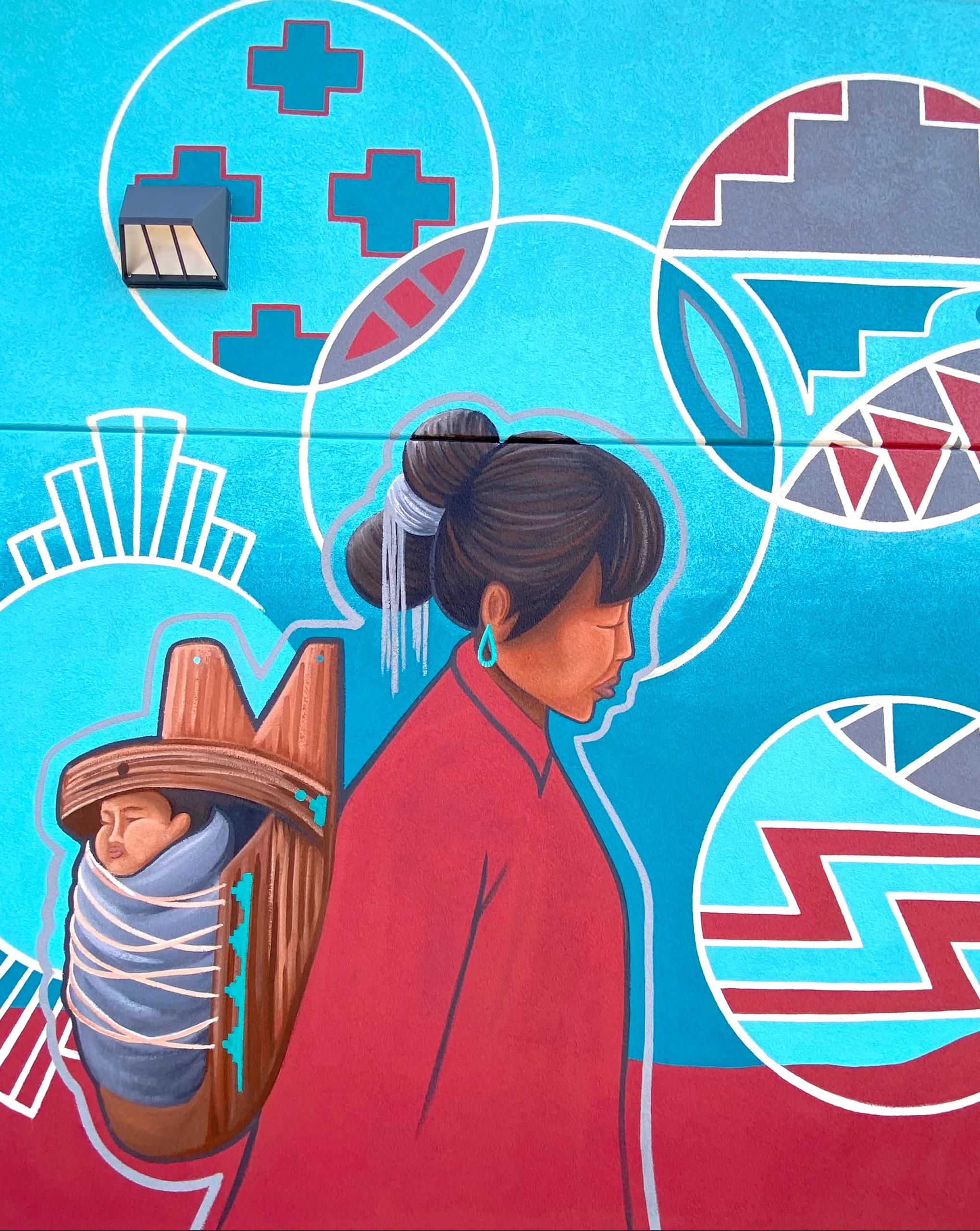 Walking with Dinetah Mural by Lynnette Haozous, 2022. Medium: Acrylic. Dimensions: 12 ft x ; 12 ft.; 365.76 cm × 365.76 cm. Location: Concha, Arizona.